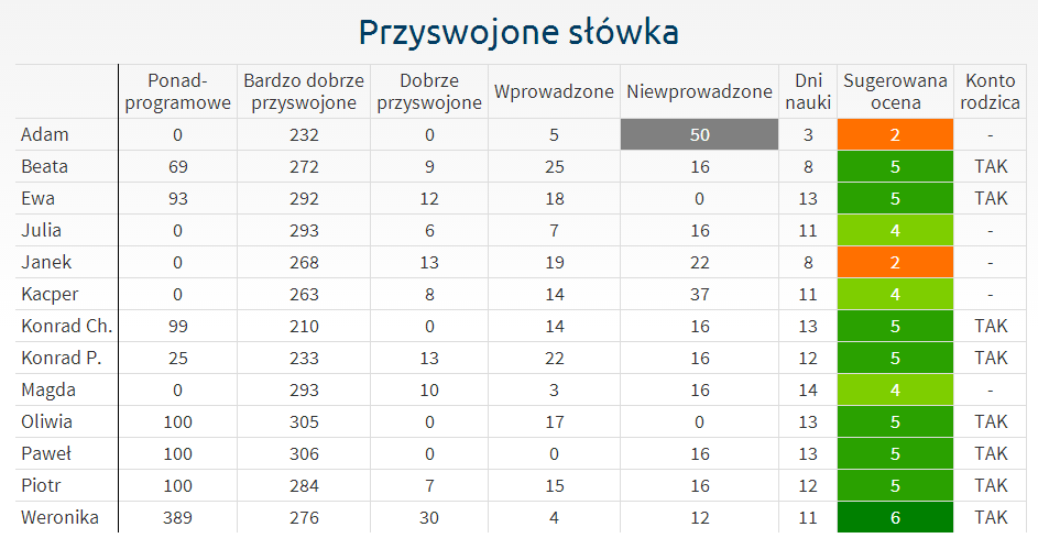Ein weiterer wichtiger Vorteil von Insta.Ling sind detaillierte Berichte und die Verfolgung der Lernfortschritte. Aus diesem Grund können Lehrer und Lehrerinnen genau bestimmen, welche Schüler systematisch lernen und welche alles bis zur letzten Minute verschieben. Es ist auch möglich festzustellen, ob ein schwächerer Schüler trotz der systematischen Arbeit nicht zurechtkommt, oder ob seine Probleme aus Faulheit oder Lustlosigkeit entstehen. Insta.Ling ist das erste Werkzeug, das Ihnen solch eine genaue und schülerbezogene Bewertung bietet!