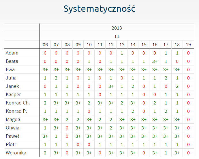 Schon seit dem Anfang der Einführung von Insta.Ling bekommen Lehrerinnen und Lehrer eine objektive Bewertung der Regelmäßigkeit, mit der Schüler zu Hause lernen. Lehrkräfte haben Zugang zu Häufigkeitsberichte, die zeigen, an welchem Tag Schüler gelernt haben.